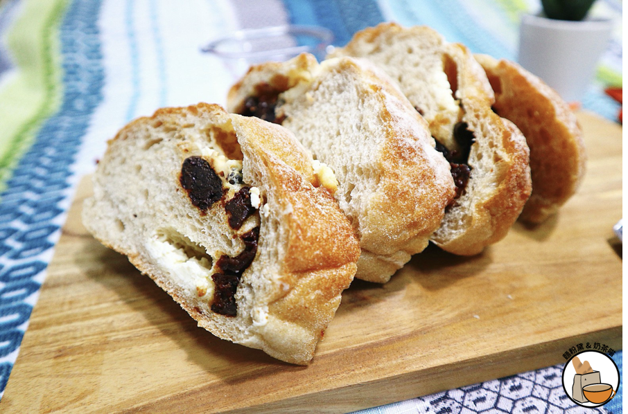 👀 先來看看 : 非常多的蜜棗乾和奶油乳酪聚集在麵包內,蜜棗乾的分量滿多的,但內餡分佈上不太均勻