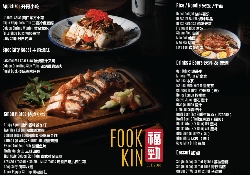 以下的菜單是取自福勁 Food Kin 官方網站 :