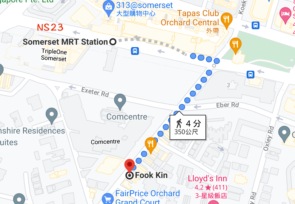 交通 : 可以選擇搭地鐵紅線到 “Somerset 索美塞站"(NS23),再走路約4-5分鐘就可以到達。