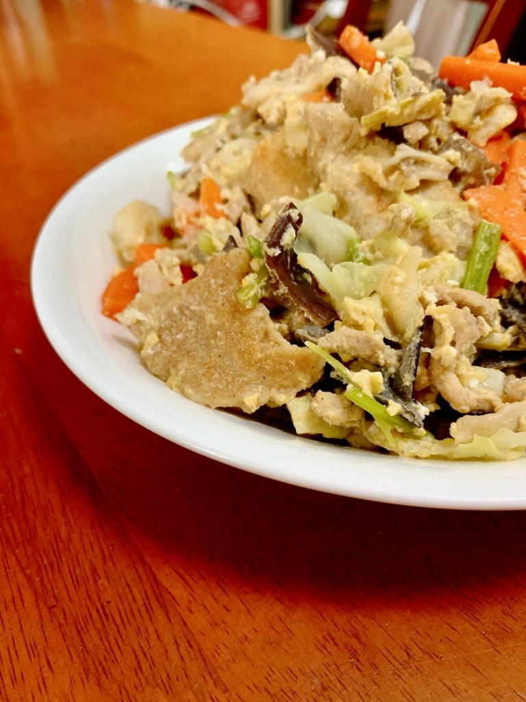 蔥爆肉絲蔬菜麵疙撘
